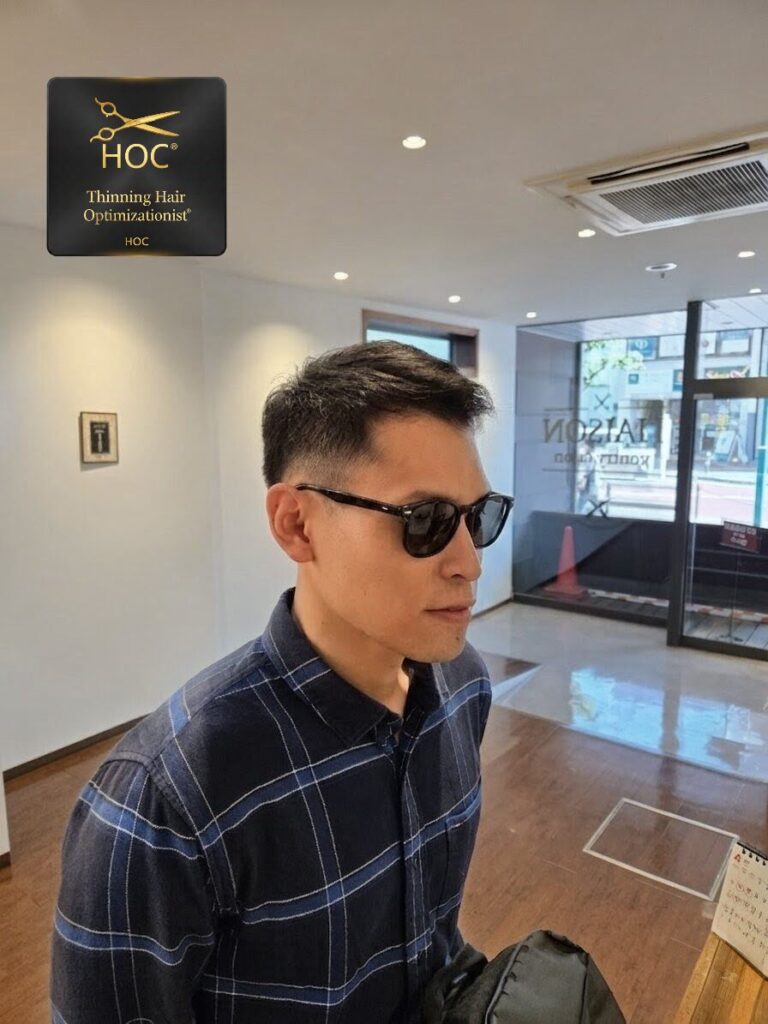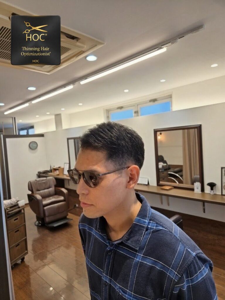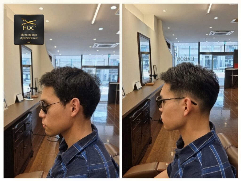 M字の悩み!フェード×自然すぎるアイロンパーマで解決、平塚の理容室